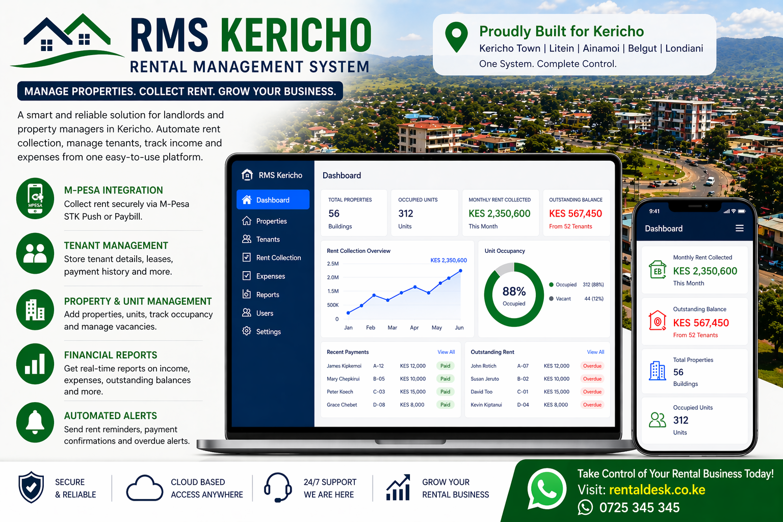 Whether you own rentals in Kericho Town or nearby areas, this system helps you stay in control.